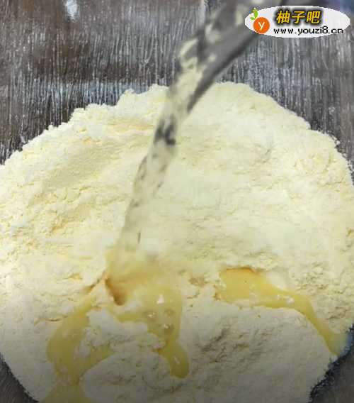 将玉米淀粉加入热水进行烫面,搅拌成絮状