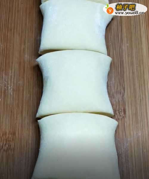 5将面粉搓揉成长条,切成剂子,用擀面杖揉平,备用