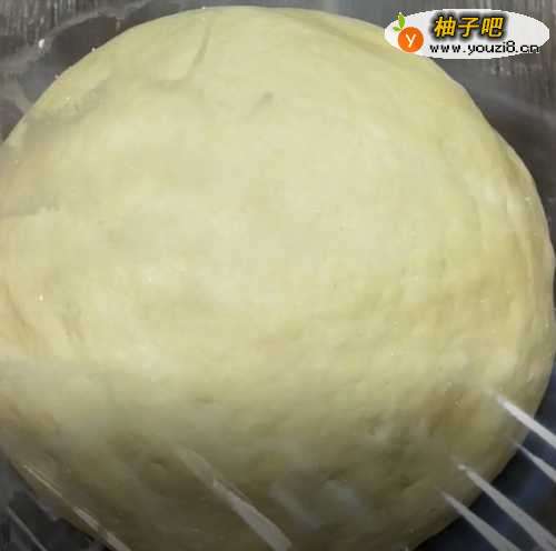 3把所有面粉不断揉面,呈现光滑后,盖上保鲜膜进行醒面