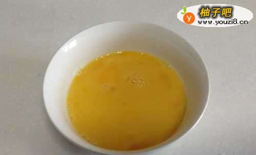 2然后将三个鸡蛋打入碗中,并打散。