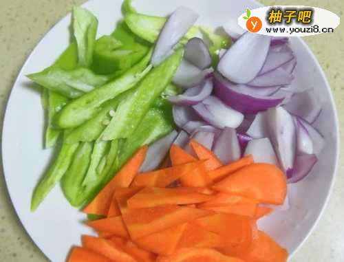 青椒、胡萝卜、洋葱分别洗净切碎备用。