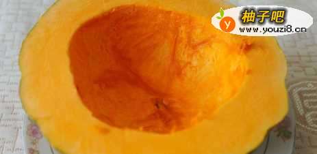 55.南瓜中间切开,去瓜瓤瓜籽做成盅备用;