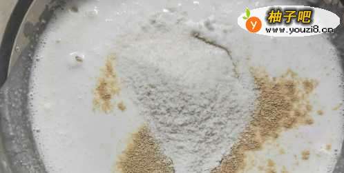 2加入适量的糖、奶粉、和酵母粉混合成稍微浓稠点的米糊。