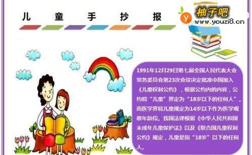 2在【儿童手抄报】标题的右侧处瞧陕板,画出画面丰富内容,如下图所示。