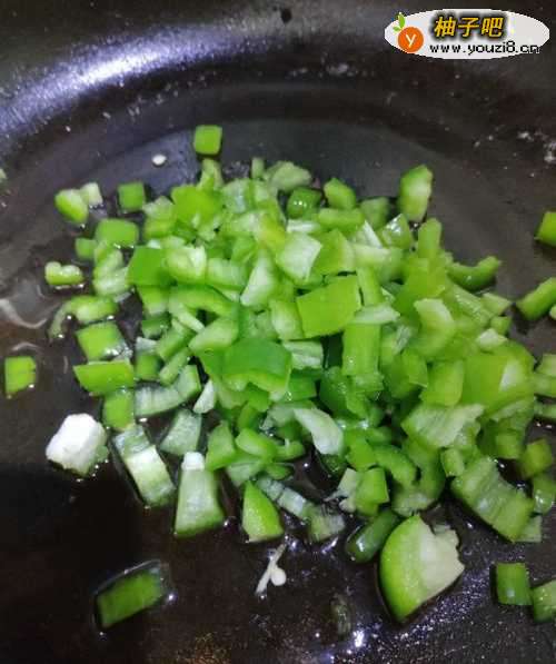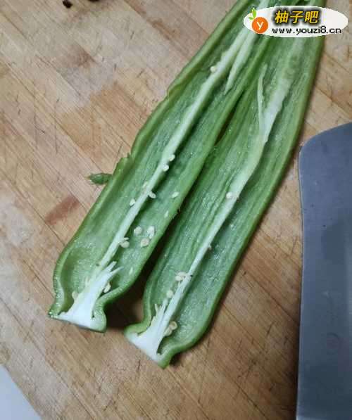 2辣椒,清洗干净,去头。从中间剖开,切碎。