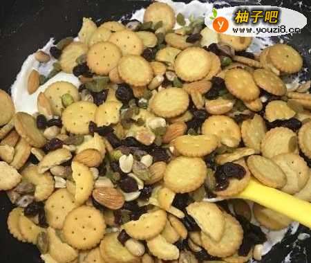 5加入饼干,与坚果,果干。稍微混合均匀