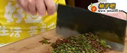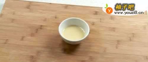 44.锅中倒入油,烧至九成热。准备小半碗面粉,将热油慢慢淋入面粉中,一边搅拌均匀,调成油面糊。