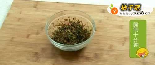 22.准备好香椿,加半勺盐拌匀,腌制十分钟左右。