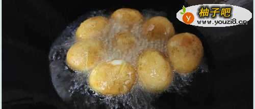 3将鸡蛋放入油锅中炸至金黄色捞出。