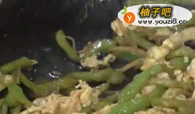 6然后是把鸡蛋跟青椒配合炒,因为之前都是炒好的鸡蛋,只要搅拌均匀保证入味就可以出锅了!