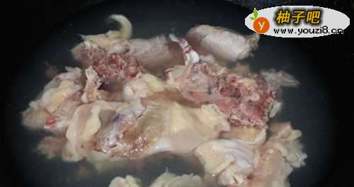2锅中添水,把鸡架放入水中焯一下水(冷水下锅)。