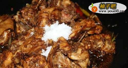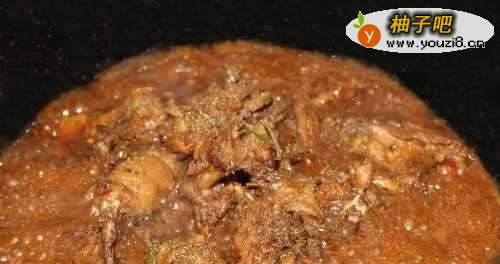 8鸡架炖好后,加入孜然粉调味。