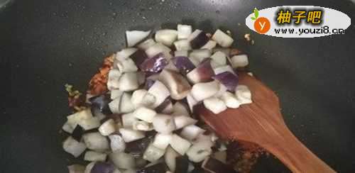10第十步:倒入炸好的茄子,中火进行翻炒均匀。