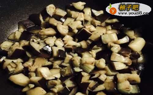 4第四步:放入茄子,进行翻炸