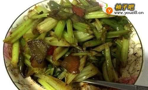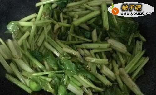 6芹菜由于已经焯过水,所以熟得也快。3到4分钟即可,加入盐、味精等调料,稍一焖,即可关火出锅。