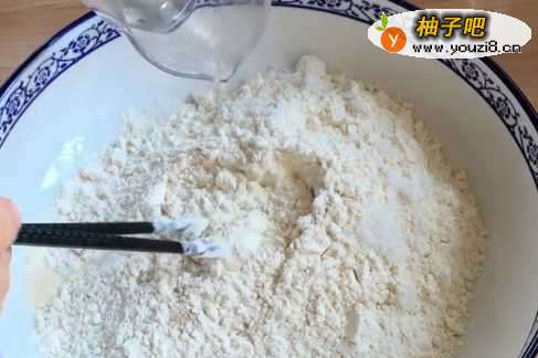放入面粉400g+酵母4g+糖4g,温水200ml和面