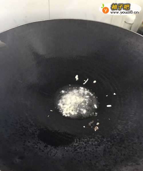 3炒锅烧热,放入花生油,加入蒜米爆香,然后把空心菜梗倒入,翻炒。可以看到空心菜梗开始变软。