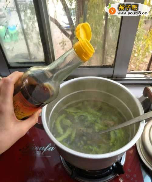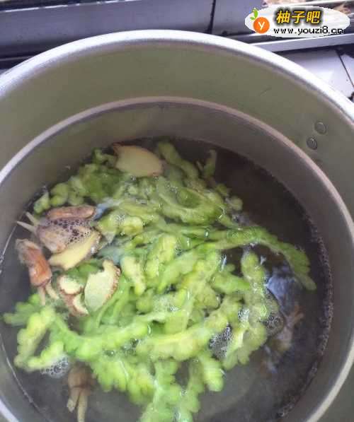 4水烧开后放入苦瓜。煮3-5分钟