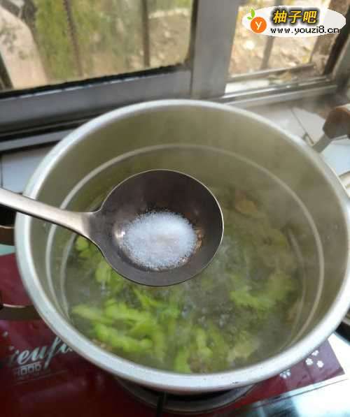 5放入盐,鸡精调味。放入一滴酱油。