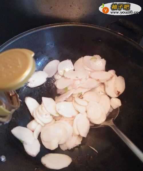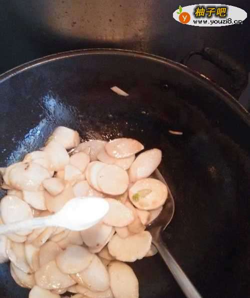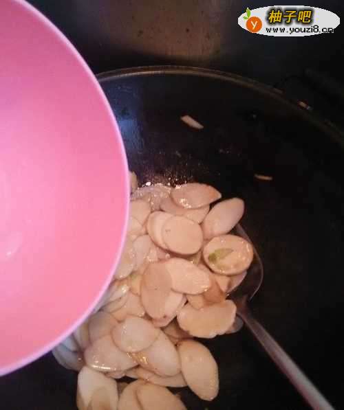 9因为山药中的淀粉多,容易炒糊,所以再加入少量清水。