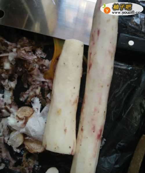 2用刀把山药削去皮,削的时候,不要碰到皮肤,最好套着塑料袋削,以免手痒。