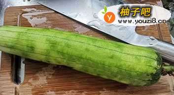 丝瓜用小刀刮去表面的硬皮,切掉两头。