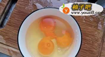 2碗中打入三个鸡蛋,用筷子搅散,加入一点食用盐调底味。