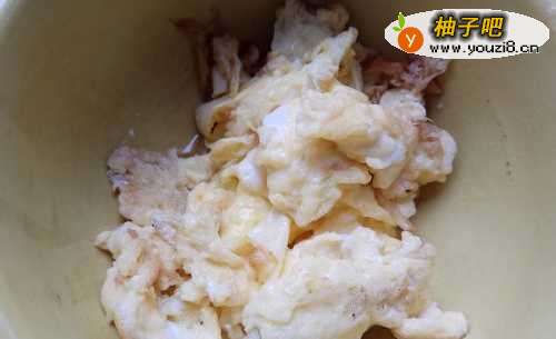3将鸡蛋打在一小碗中,搅拌均匀,然后将炒锅中放入食用油,开火,待油微热后,将打好的鸡蛋倒入锅中,炒成鸡蛋块盛出。待用。