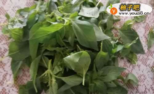 2将荆芥摘哨销好(即将叶子摘下留用,其余扔掉即可),然后泡在水中10分钟,然后冲洗干净。待用。