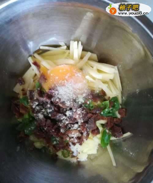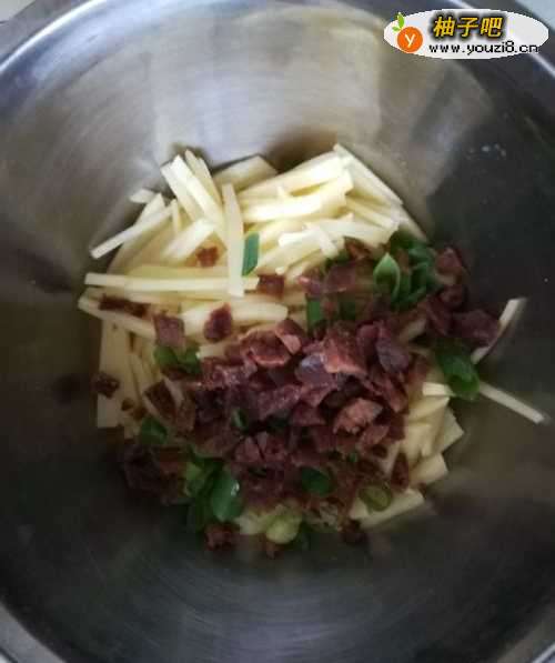 土豆去皮,切成短丝。