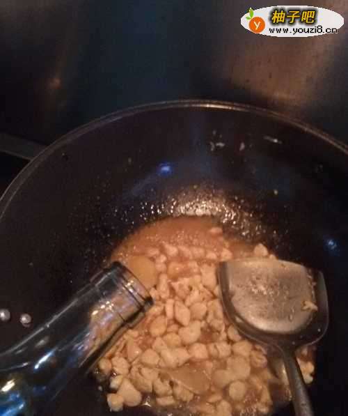 5再在锅中加入适量的料酒,去掉鸡肉的腥味。