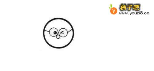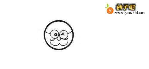 3第3步,然后我们在眼镜里面把他的眼球画出来,一个用黑球表示一个用两条斜线来表示,这表示他闭上了一只眼睛,