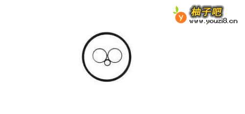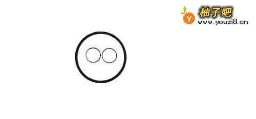 第1步,我们先画一个圆,表示这个老人的头部轮廓,然后在圆中间画两个小圆,这两个小圆表是老人所佩戴的眼镜,