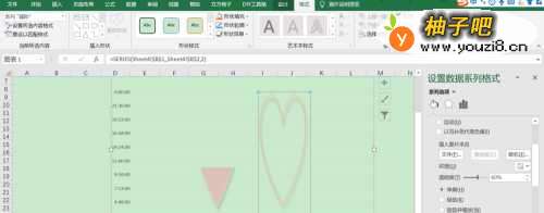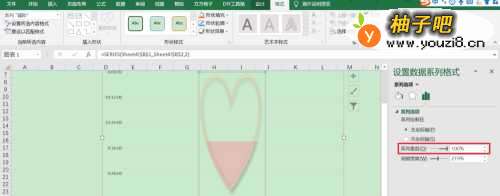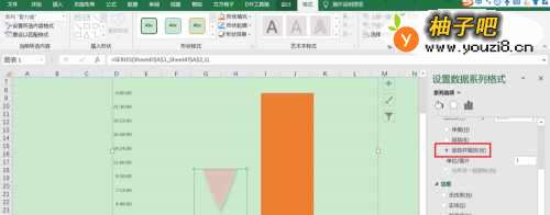 8右键图表,打开“设置数据系列格式”窗口,系列重叠设置为100%;