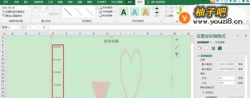 7选中纵坐标,设置最大值为43604.00000000001,最小值为43603.00000000001;