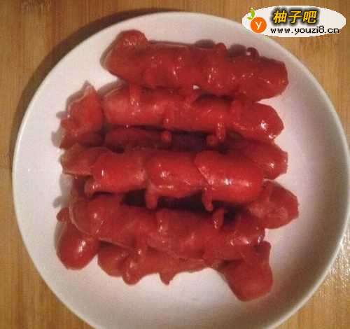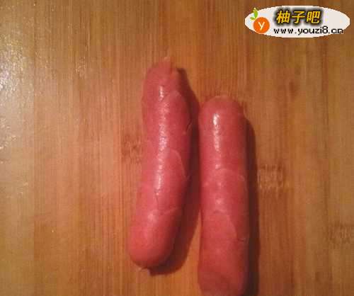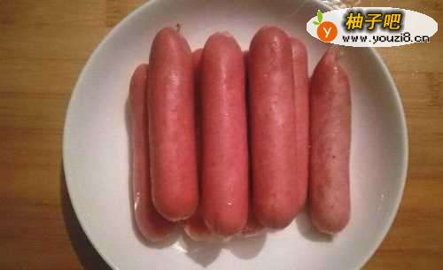 准备火腿肠,一般超市有售。