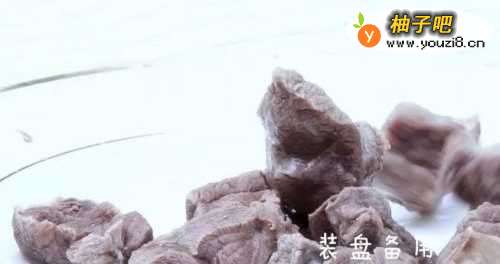 2牛肋条切块冷水入锅焯水(撇去浮沫)