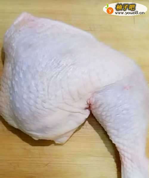 第一,从超市买来一个大鸡腿,洗干净,切成均匀的小块,具体操作如图所示: