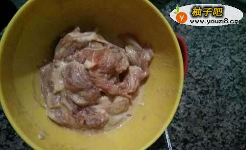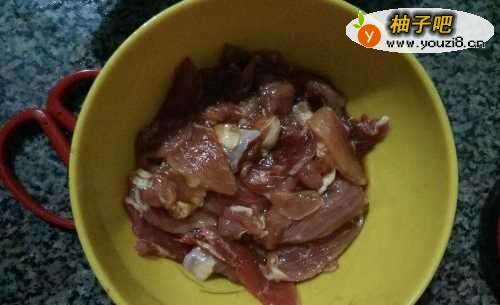 将瘦肉洗净切片,加入料酒和生抽,腌制十分钟;