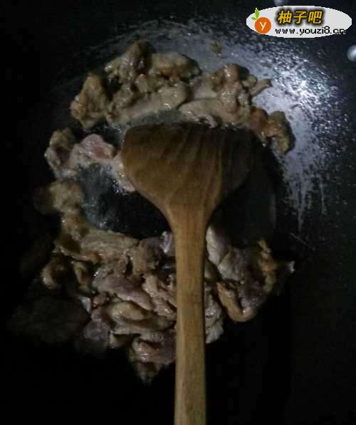 4开火,加入适量的食用油,将瘦肉下入锅里翻炒至熟;