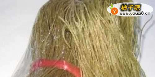 红薯粉要选择这种粗圆的不光滑的,提前在水里泡软,这样煮的时候比较省火,很快就能吃到,我每次都是心血来潮的想做,就没泡,要煮好久的。