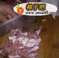 2五花肉切片后放一点料酒、盐、抓匀备用。