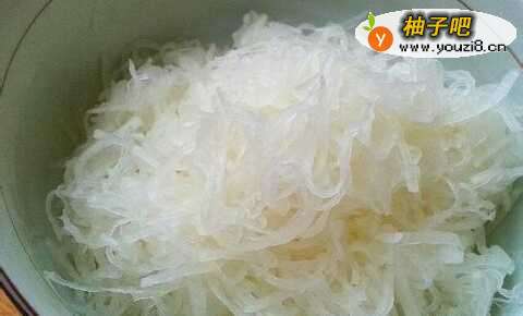 新鲜白萝卜洗净削皮,然后用擦丝器擦成丝,放少许盐揉搓均匀后,用双手合拢