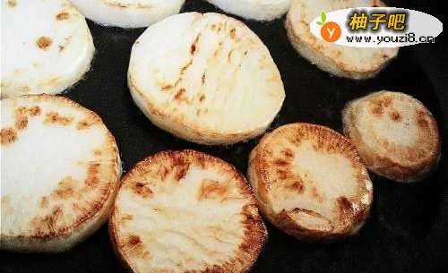 2起油锅将白萝卜煎至两面金黄,起锅备用。