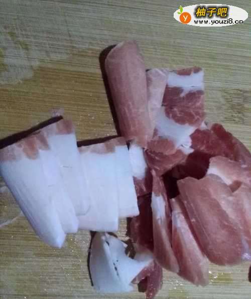 2猪肉洗干净,切小片,肥瘦分开