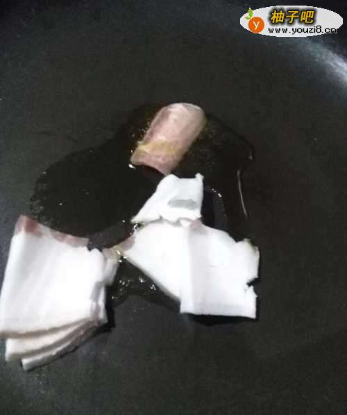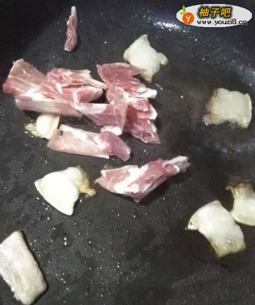 3锅烧热,将肥肉放入锅中煸炒出油脂