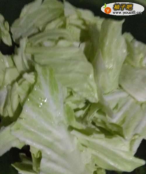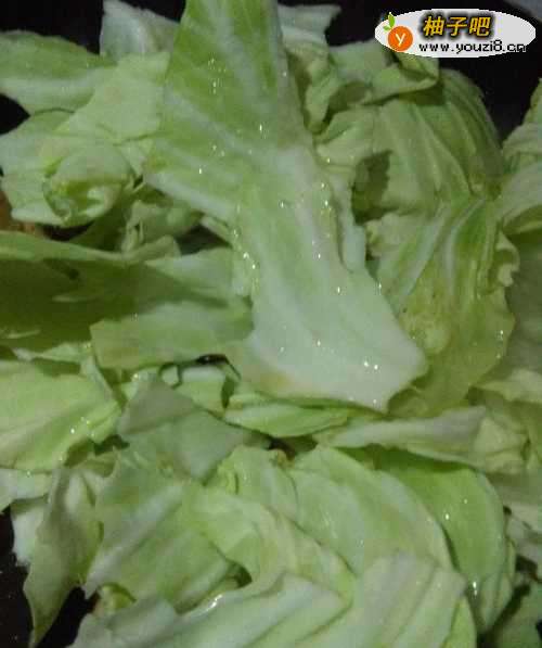 7将圆白菜的叶子放入锅中翻炒