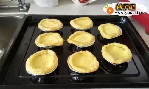 5将蛋挞液倒入到蛋挞皮中,7-8分满即可。