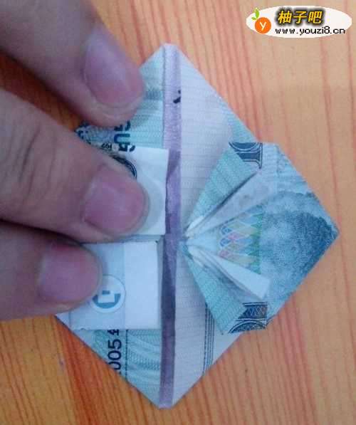 6接着把中间多余的部分折叠,不留空隙。如图所示