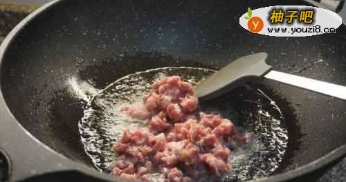 5滑散到肉丁变白后盛出到碗里备用